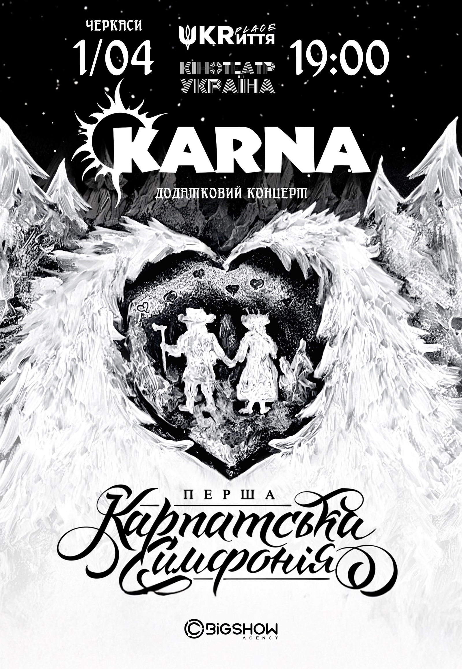 Karna. Перша карпатська симфонія відбудеться 1 квітня 2026, 19:00, середа в Кінотеатр Україна - UKRиття Place. За допомогою сервісу internet-bilet.ua, Ви зможете з легкістю забронювати, замовити та купити квитки на концерт, спектакль, оперу, балет, майстер-класи, спортивні та дитячі заходи, що Вас цікавлять, оплативши їх найбільш зручним для Вас способом: через інтернет банківською карткою VISA/MasterCard, готівкою або кур'єром, якщо зробите замовлення квитка з доставкою.